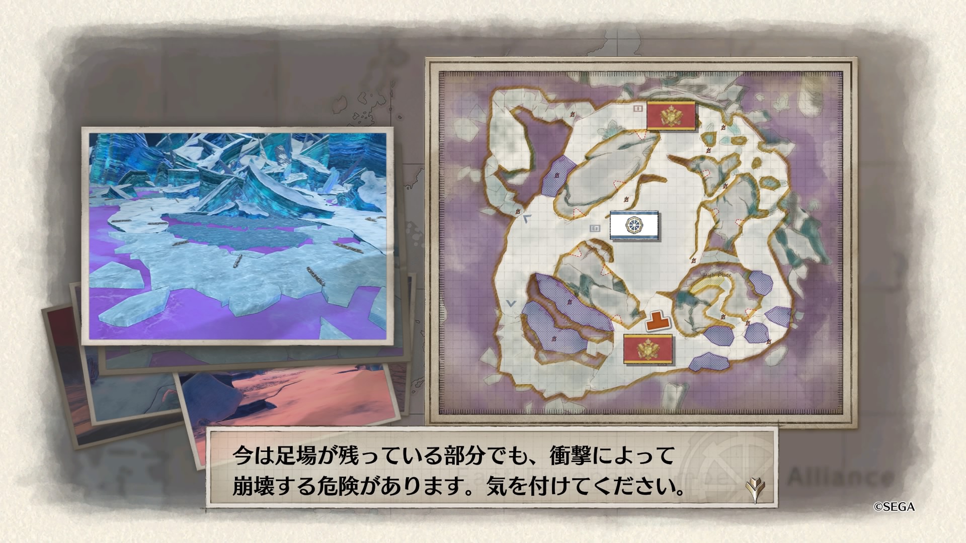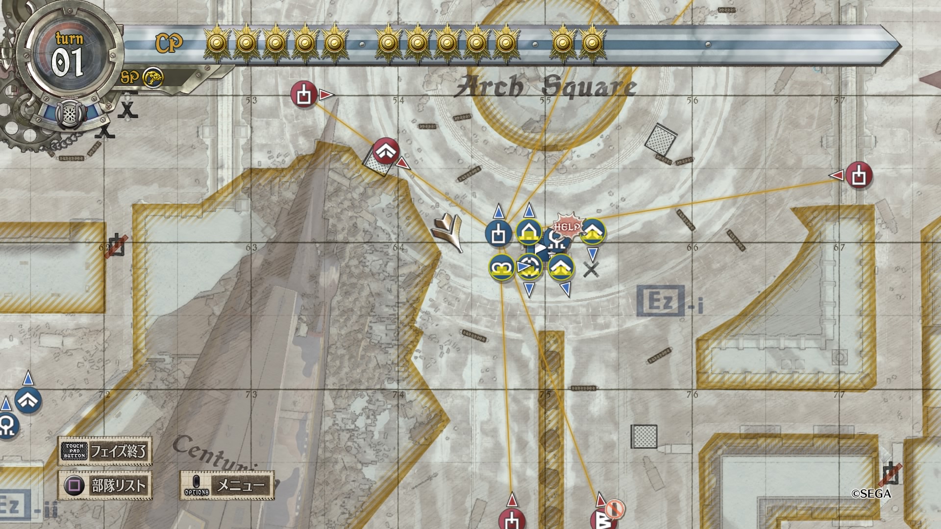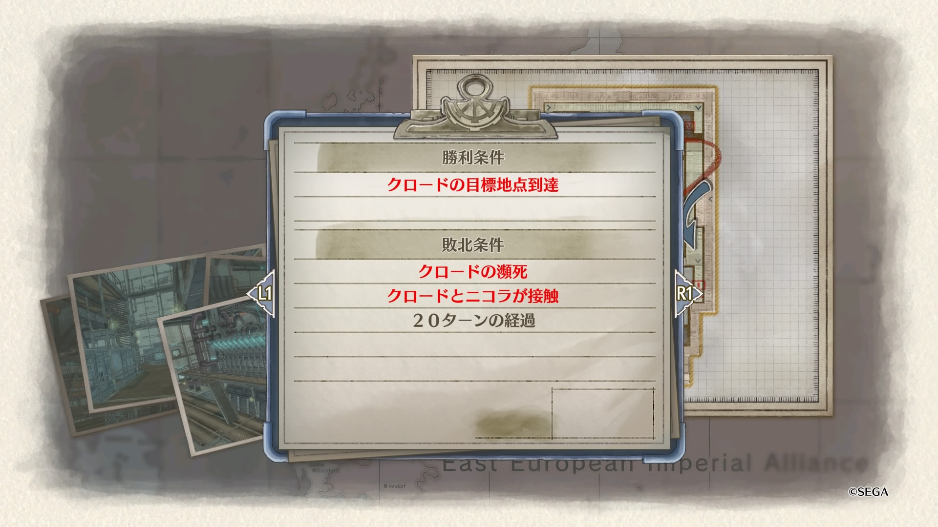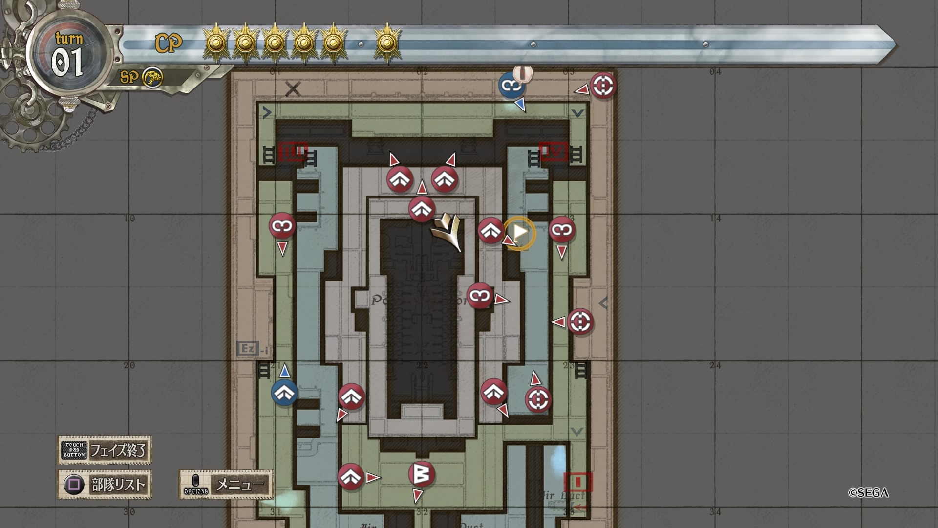 戦略マップをよく見ると、南北から伸びる赤矢印に対して西側に小さく青矢印が書かれており、これに従って敵のボスから逃れるように進軍するのがベターだったようです