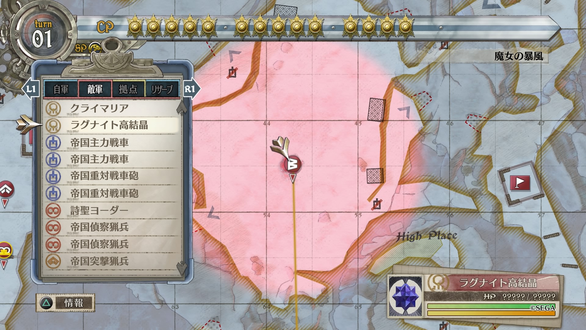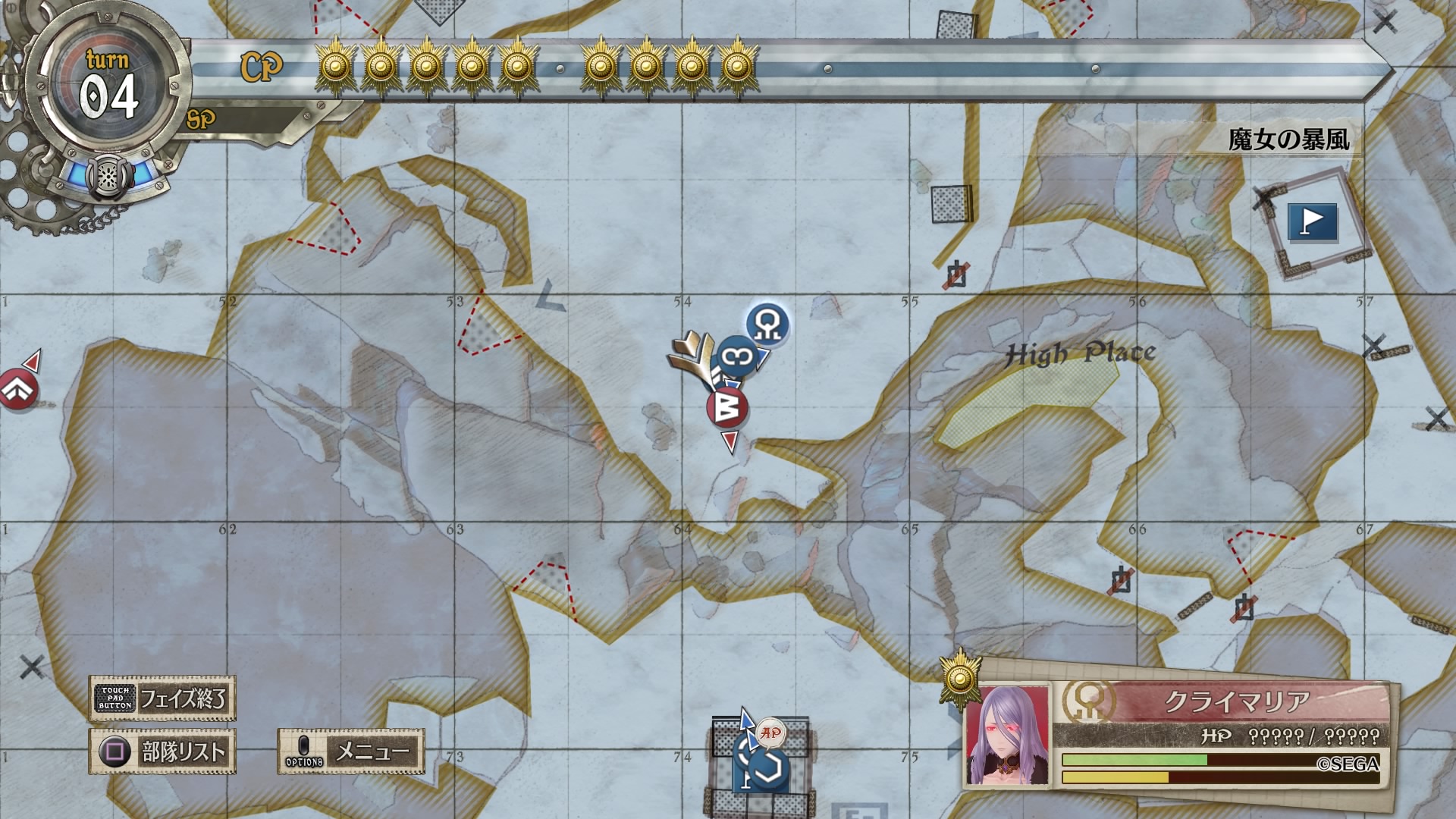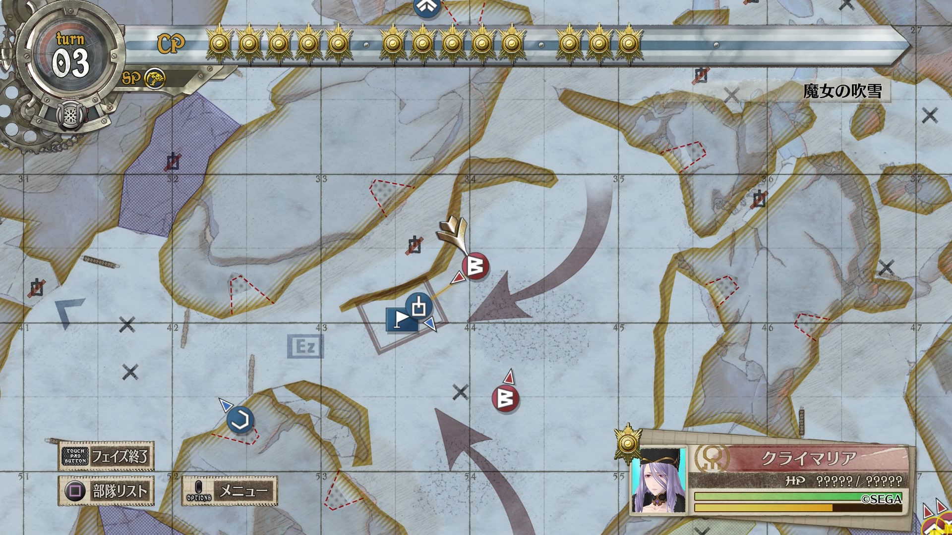 もちろん、クライマリアはエネミーフェイズに移動してこちらを射程におさめようとするため、安全地帯にいないユニットは容赦なく狙われやられてしまう