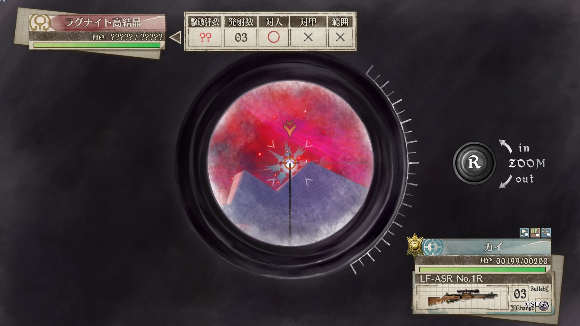 狙撃兵で弾を当てても遠距離からの攻撃ははじかれるため意味は無く、残弾数を考えると他の兵科で挑発するのがいい
