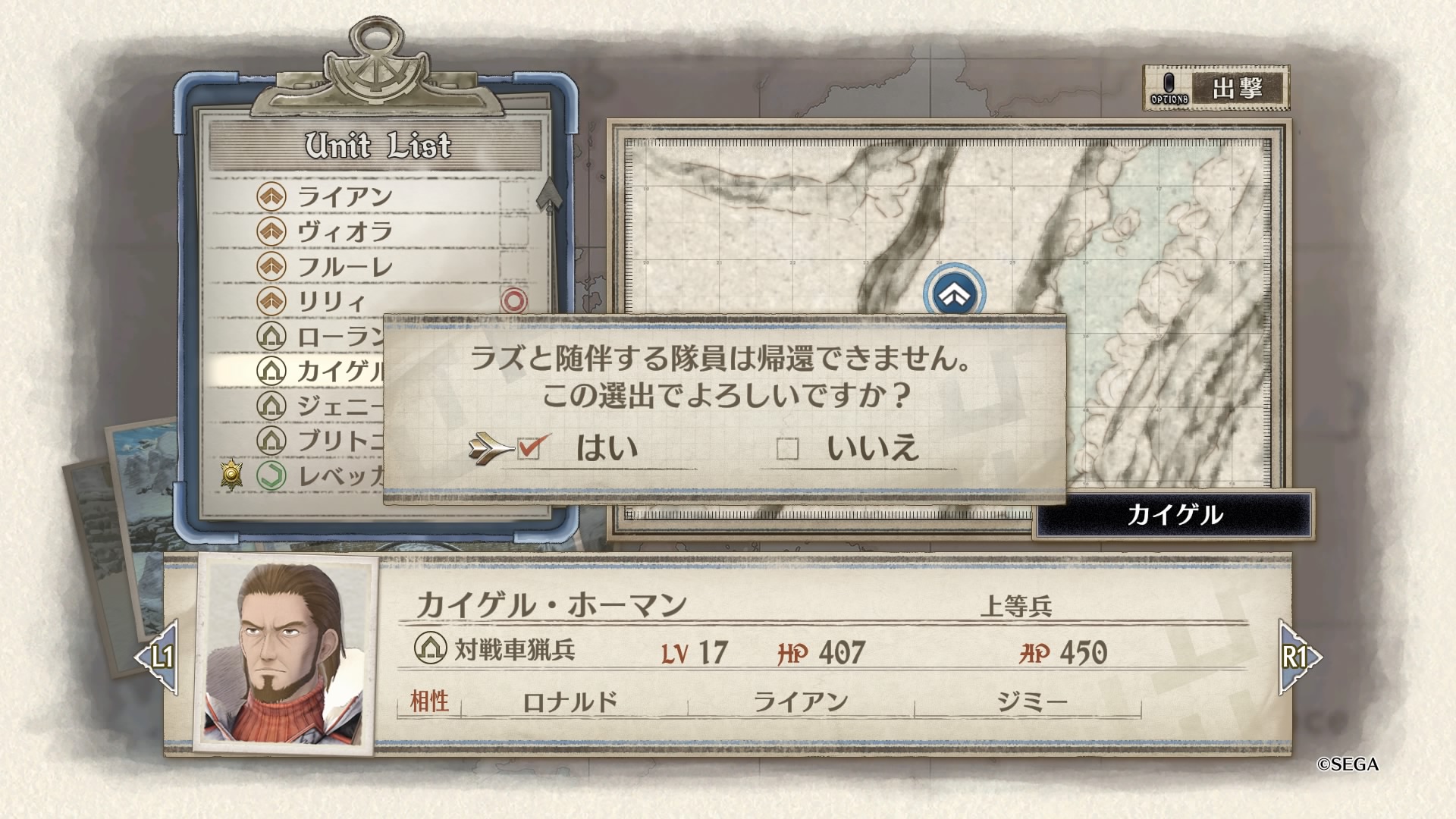 ニコラは偵察兵のためAPが多く、しかも2回行動するためマップのどこにいてもクロードの元に到達、接触される恐れがある