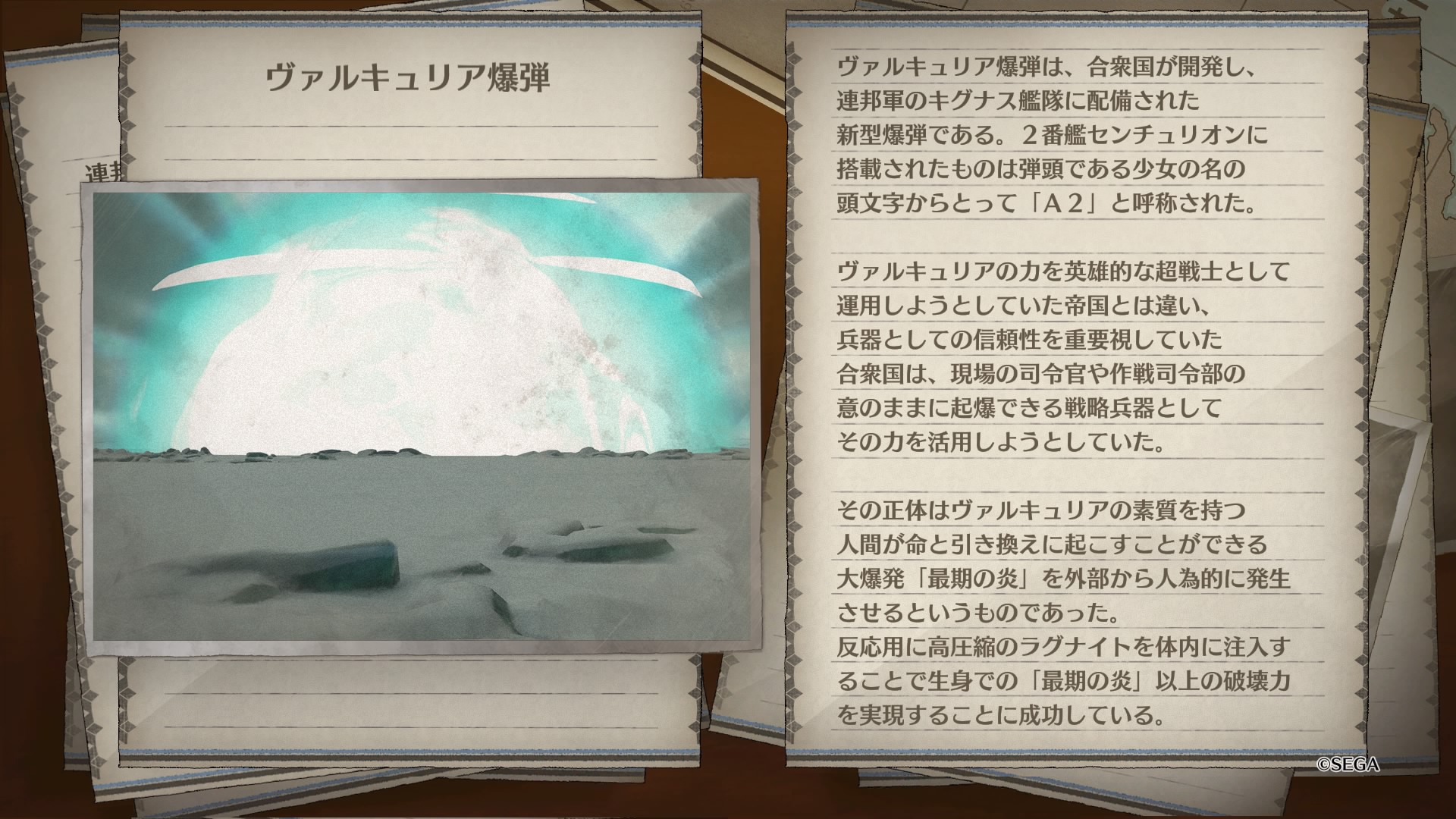 しかしA2爆弾の破壊力を知った帝国の上層部が、それを積んだセンチュリオンが帝都に突入したことを受けて急遽停戦に合意したため、このようなギリギリのタイミングになったとのこと