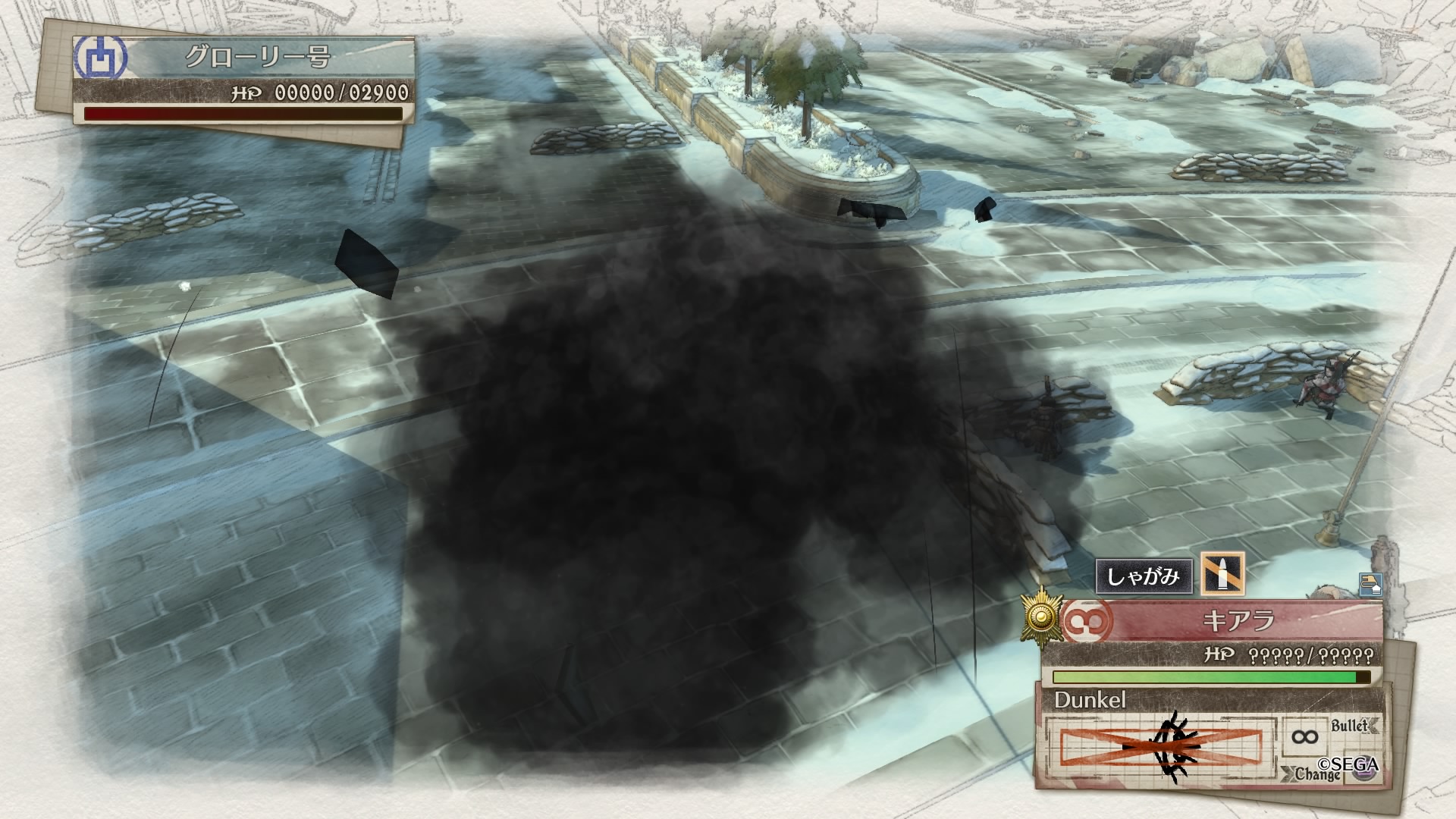 このミッションの初期配置は上記の3人とクロードの戦車なのだが、敵軍は戦車、機関銃座、擲弾兵など危険度の高い敵が配置されている
