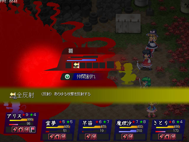 ムラサには鈴仙の狂戦士が良く入るので、狂戦士にしたらあとはそれを解除しないように魔法攻撃や一撃の威力が高い攻撃で攻めれば問題なく倒せる