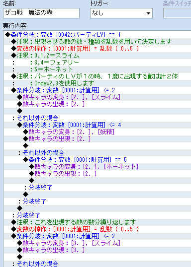 この際、敵グループを決定するのに用いられる変数はパーティの先頭にいるキャラクターのLVとなります。