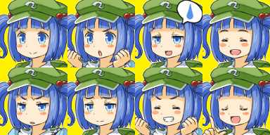 幻想郷の河童の例に漏れず、人間と河童は盟友だと思っており、人間が危険な山へと立ち入らないよう警告してくれるが、人見知りをする一面もあり、人間を見ると逃げ出す。