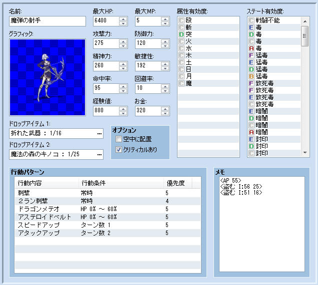 以前試験的にラスダンの敵キャラデータを公開してみましたが、調整を加えたところそのときお見せしたものよりもさらにステータスを強化しました