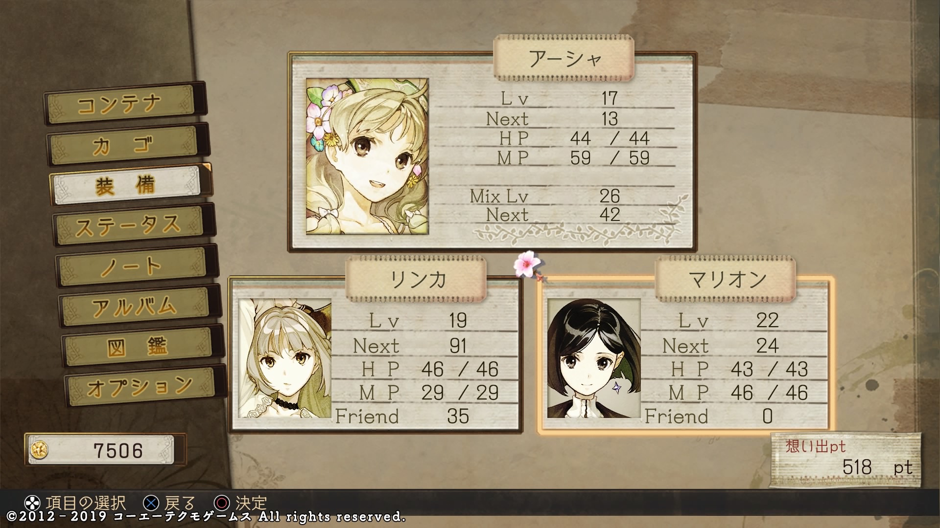 エスカ&ロジーは原作のPS3版とは違う追加要素が追加されたPlus版を、シャリーは完全に未プレイということで新鮮な気持ちでプレイしましたが、アーシャについてはPlus版をすでにプレイ済みなので、内容は完全に同一のものを再度プレイする形になります