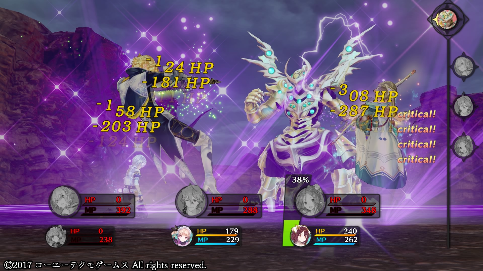本編よりも大幅にパワーアップしているほか、本編ではリディーとスールの2人だけだったのが、今回はフィリス以外の5人パーティで戦える
