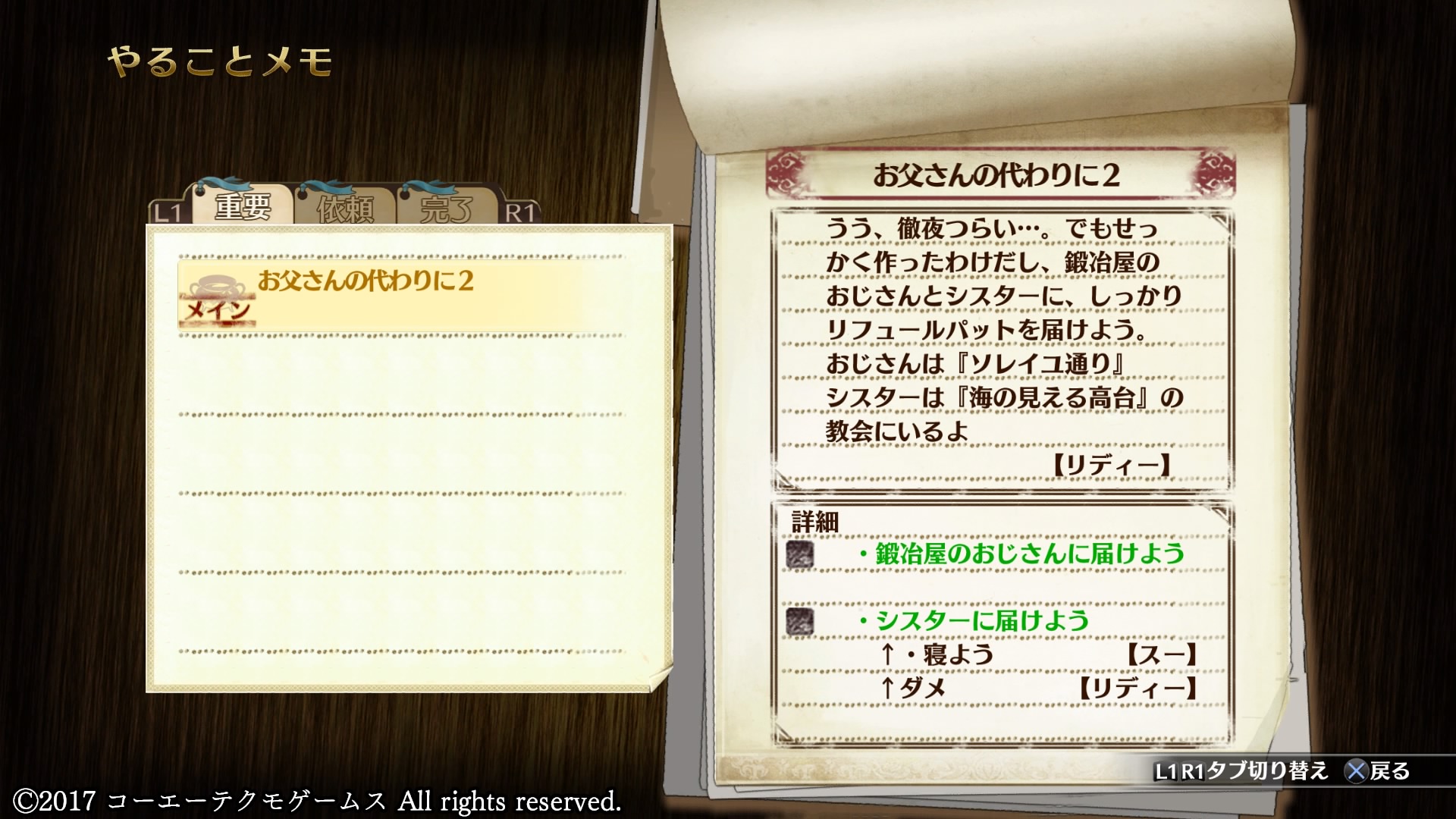 その後アトリエランクを上げるため、評判を上げる方法についてまとめた野望ノートという項目がメニューに追加