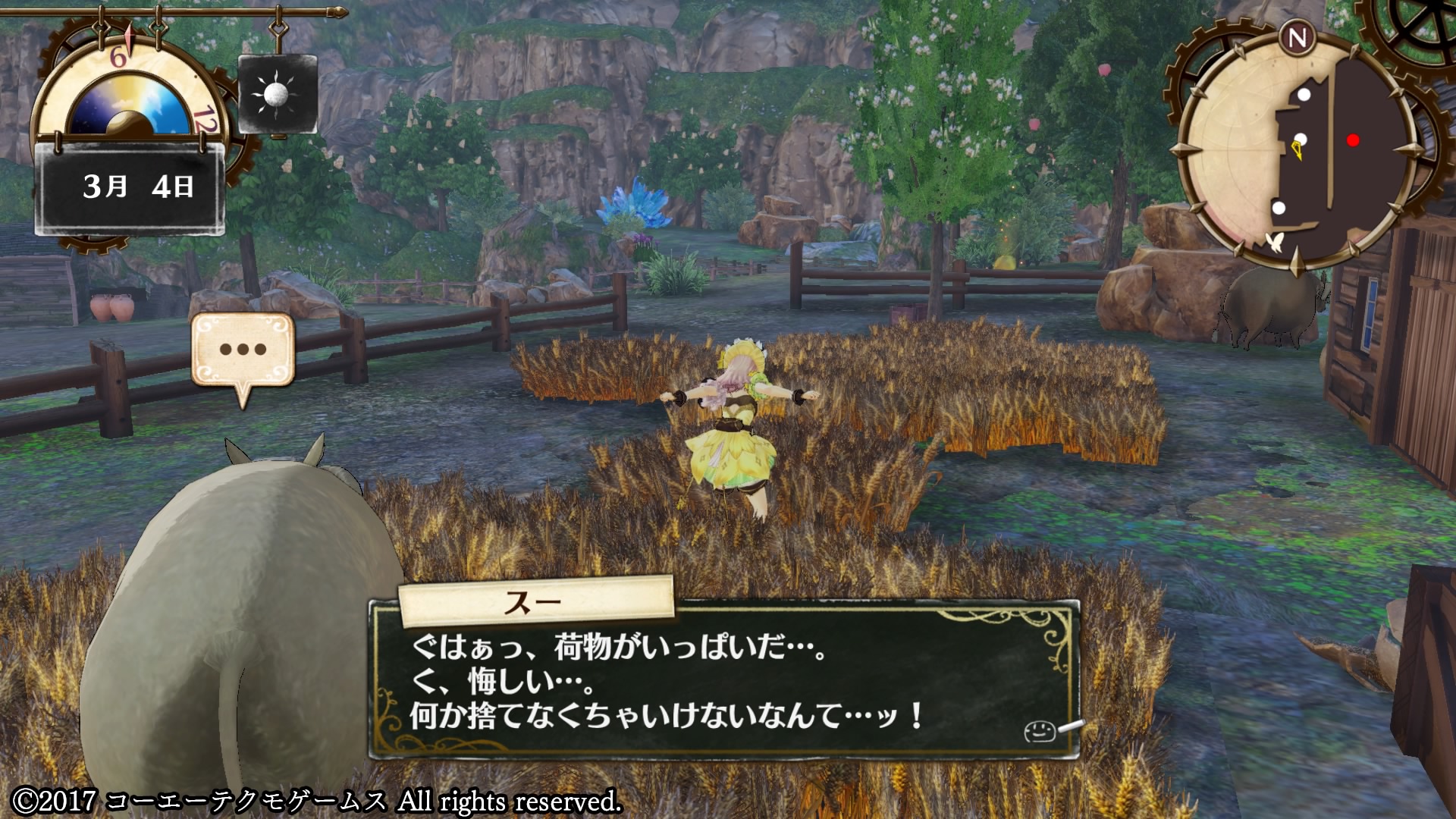 逆に考えると、今までのアトリエシリーズは素材を採取するだけで日付が経過するという、時間の流れが恐ろしく速い世界だったから、今作の時間の流れは今までで一番現実世界に近い、ともいえます