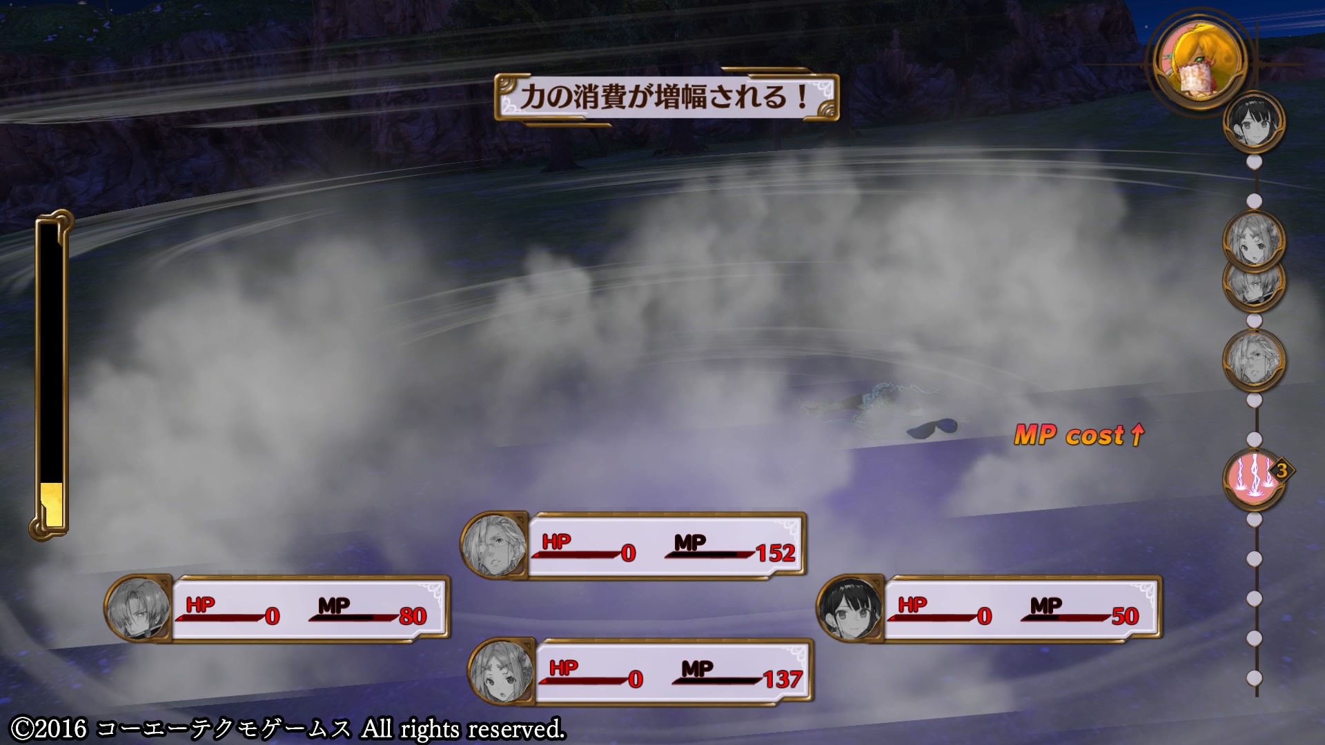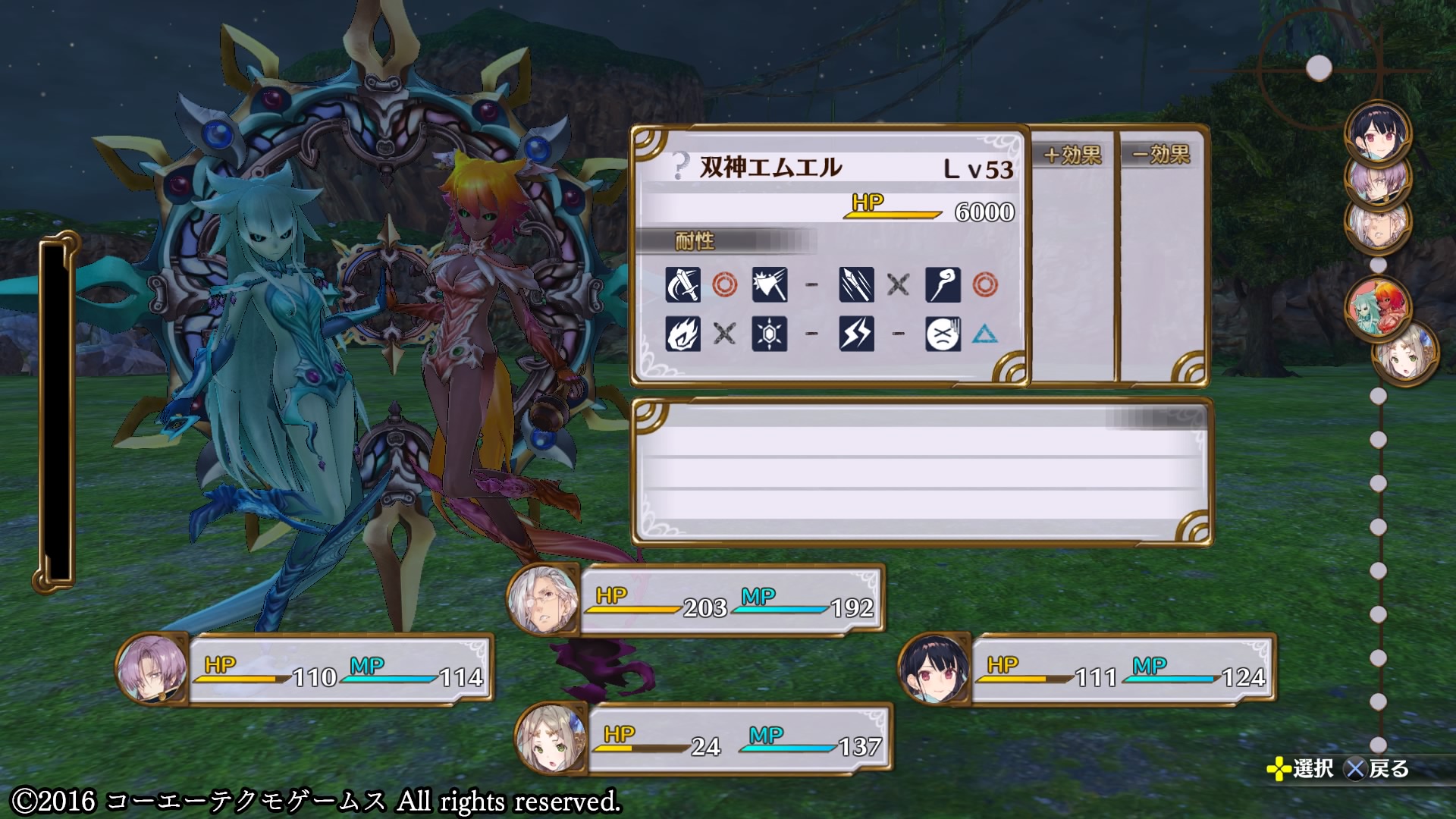 例によって何もできないまま全滅させられるものと最初から諦めてたんですが、弱点をつくといい感じにダメージ入るし、敵の行動速度は遅く全体攻撃も大したことない