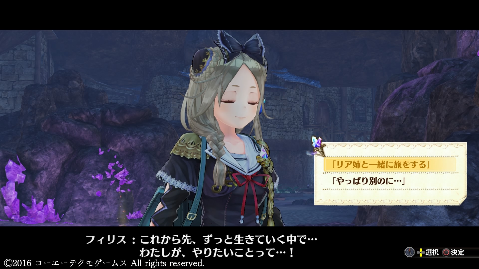 前作ソフィーのアトリエではエンディングに分岐はなく、追加エピソードを含めても2パターンしかなかったのに対し、今作は仲間になるキャラ全員分のルートが存在(ソフィーとプラフタは2人1組)するため、全部で10通りものエンディングがあります