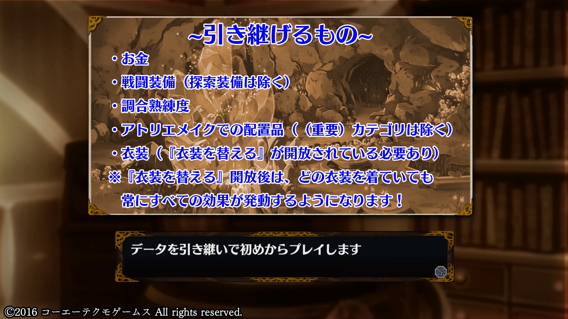 コルネリア人形などの重要アイテムは引き継げないのが残念ですが