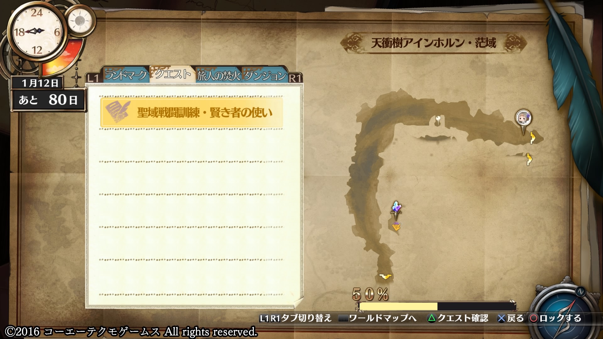 旅がテーマの一つでもあるアーシャのアトリエでも、離れた町を何度も行ったり来たりしたので、町の変化を感じたりやり残したイベントの消化もできたんですが、今回は行く必要のないエリアが沢山あるし、ほとんど一方通行でシナリオ上戻る必要がないから、ライゼンベルグに向かうことだけが目的になっててそのほかがちょっとないがしろになっちゃってる感じなんだよなあ