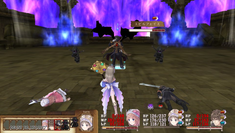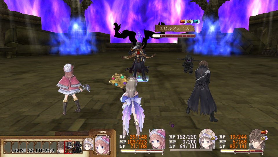 エビルフェイスは毎ターン2回行動で全体攻撃、状態異常、ステータス低下と厄介な攻撃を数多く放ってきます