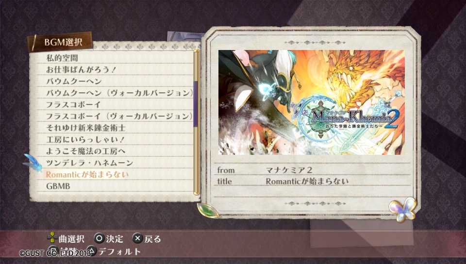 また、アトリエのセーブポイントでは毎回恒例なのか、BGMの変更が出来ます