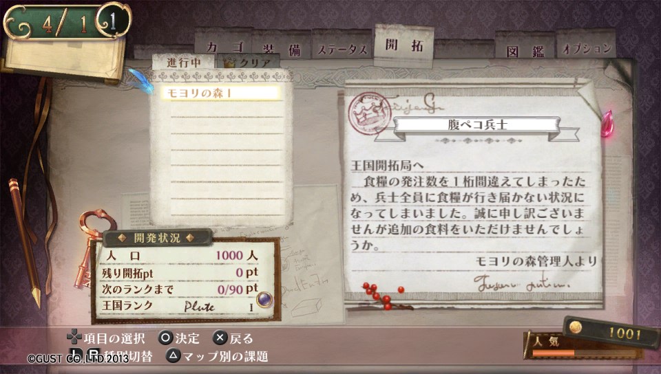 メルルでは開拓の項目で提示された目標を達成することで、開拓ptを貯め、王国のランクを上げていくのがゲームの主な目的となります