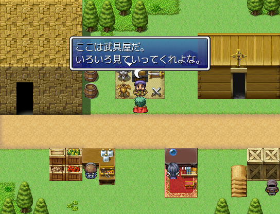 拠点では武具屋・魔法屋・道具屋といった売店があります
