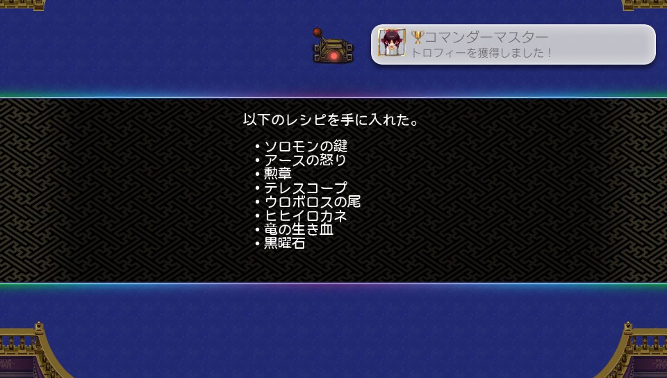 修得条件は主に戦闘に関するもので、1回達成すればOKな簡単なものから、ラストワードを発生させてその効果で敵を5回即死させるという、やってみると思ったより面倒なものまで