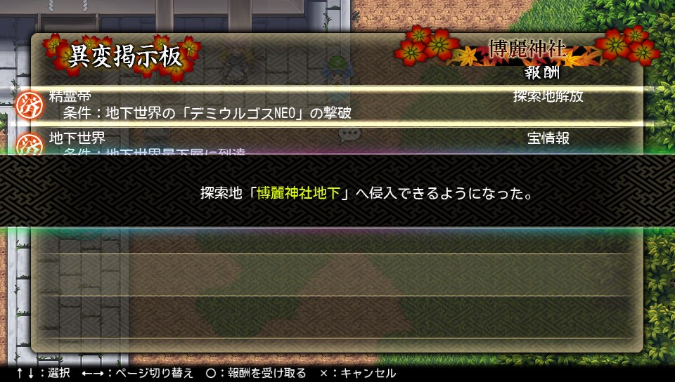 デミウルゴスNEOを撃破すると、さらなる高難度ダンジョンである博麗神社地下に入れるように