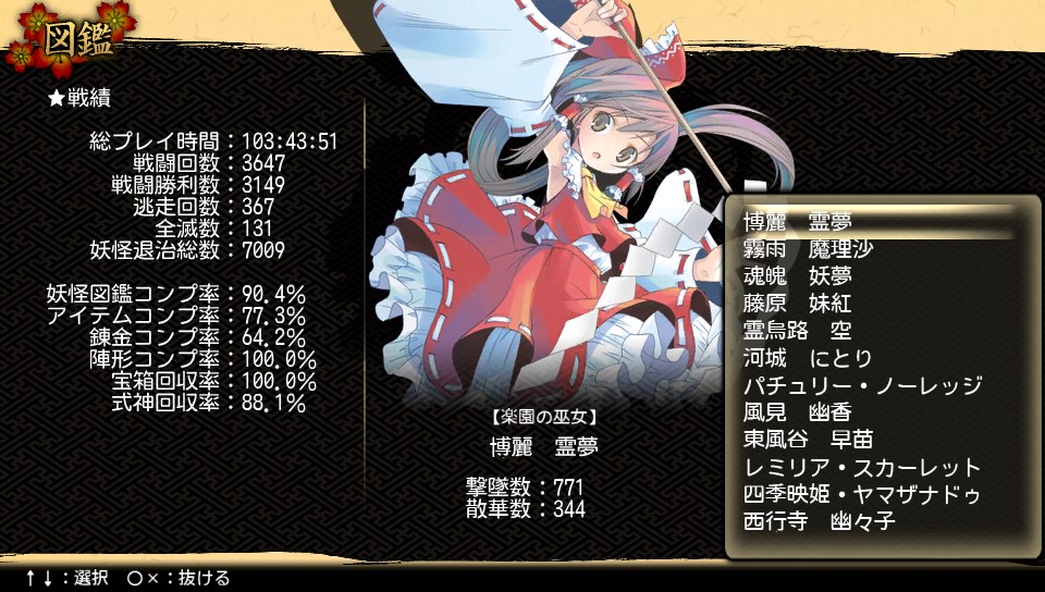 せっかくここまで来たなら妖怪図鑑埋めたり式神コンプしたり、完全体神綺と戦えよって感じですが、自分ではもう十分やりこんだつもりですので、ハイ(汗)