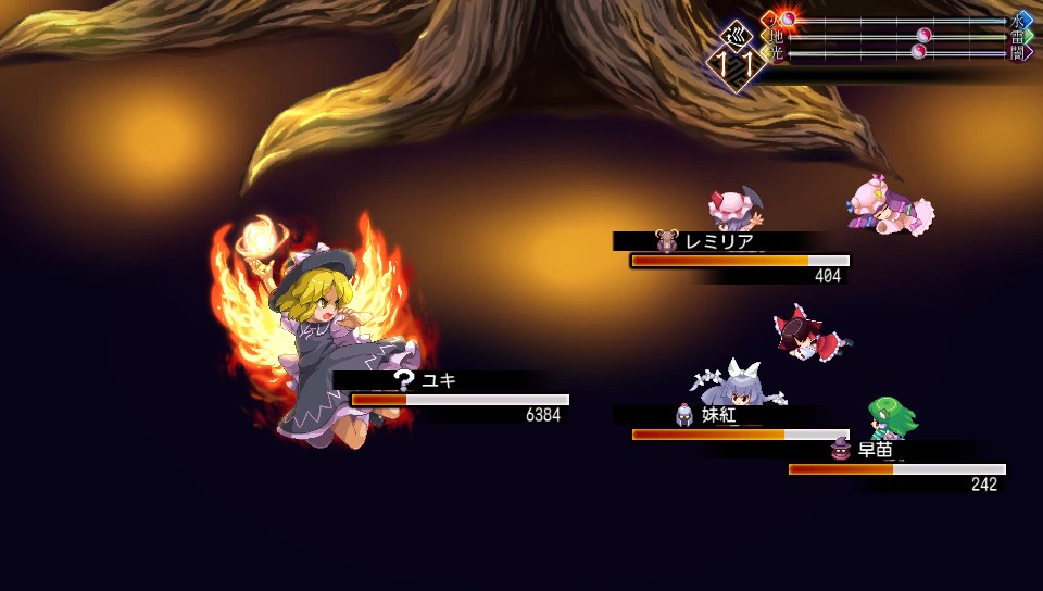 前回の教訓から、この方法だと火の地相が高まり、ユキが単体になった時の再生力がとんでもないことになるので間違ってマイを倒してしまわないよう要注意