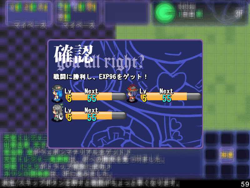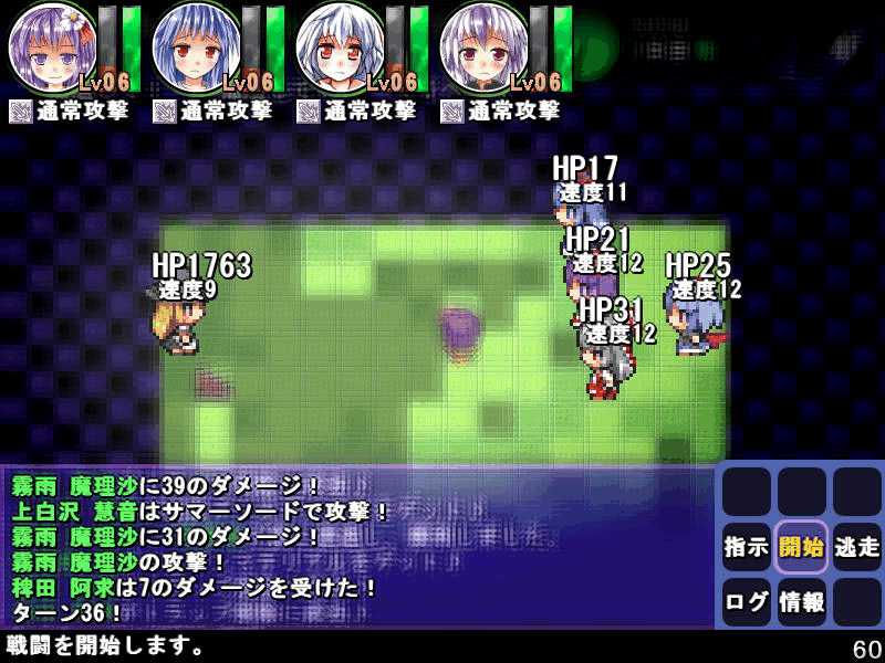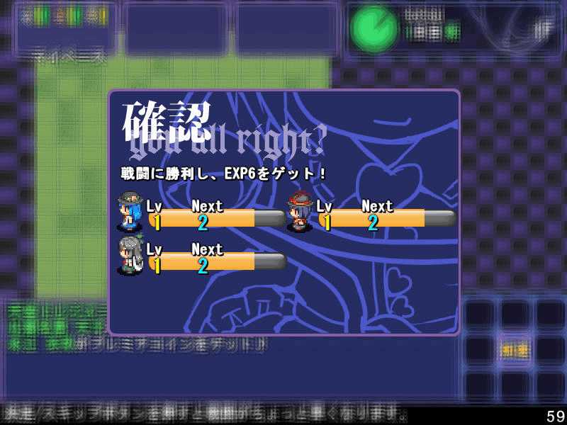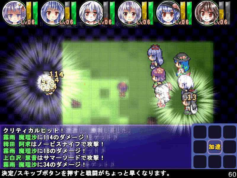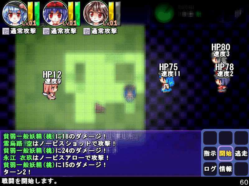 味方の陣形も見直し、ヤマメを前衛のディフェンサーにしたところヤマメがほとんどの攻撃を引き受けてくれたので、後衛の範囲攻撃で敵の数を減らし、なんとか勝利することが出来ました