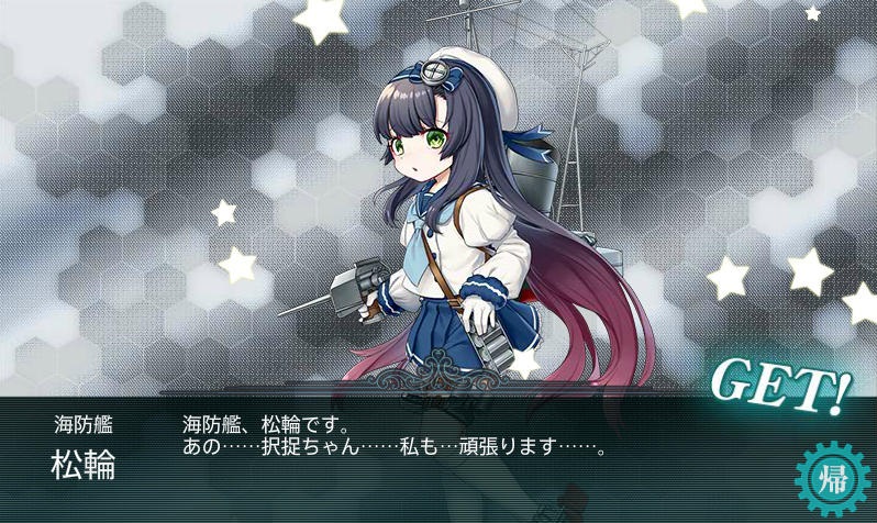 あ、今回の限定ドロップ艦は4艦居るんですが、そのうちの天霧、松輪、ルイージはすでに攻略中にドロップしたので、あとは狭霧を掘ることになります