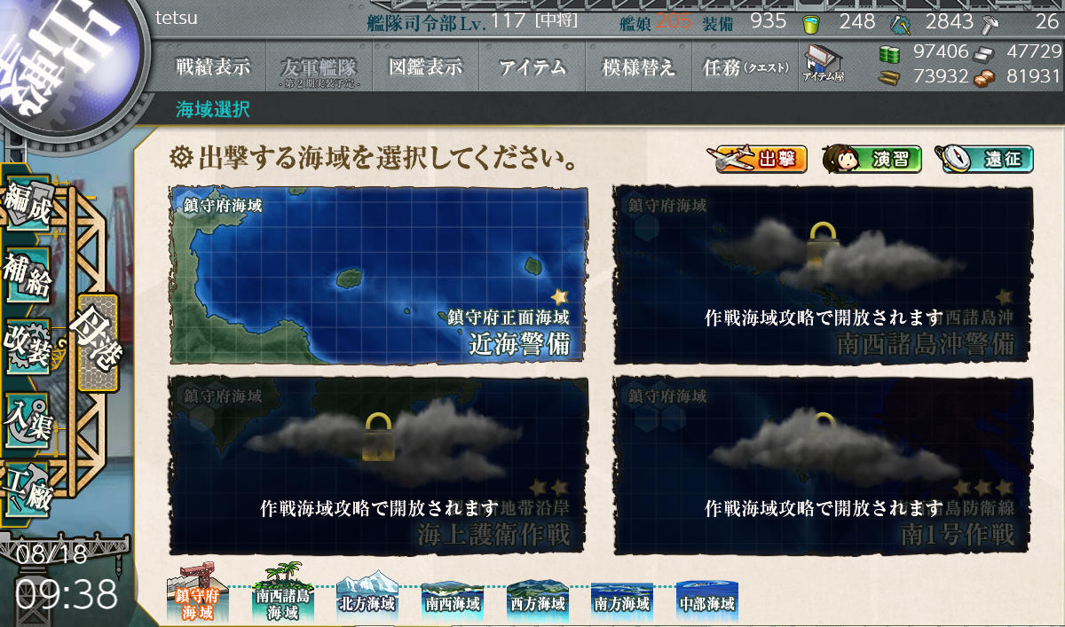そしてここからが重要なのですが、第二期に移行するに当たって通常海域がリニューアルされ、最初から新規に攻略、順次海域を開放していくことになります