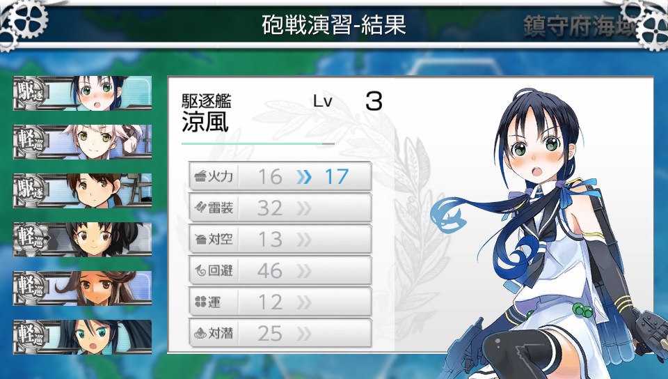 演習すると経験値が得られてLVUPするのは間違いないのですが、ステータスが上昇するのはLVUPとか関係なくて、実行した演習に対応したステータスが確率で上昇するというもの