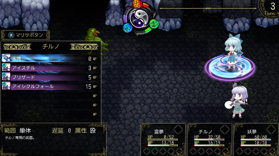 ちなみに魔理沙は戦闘には参加せず、アイテムを使用する時に1ターンに1回呼び出せます