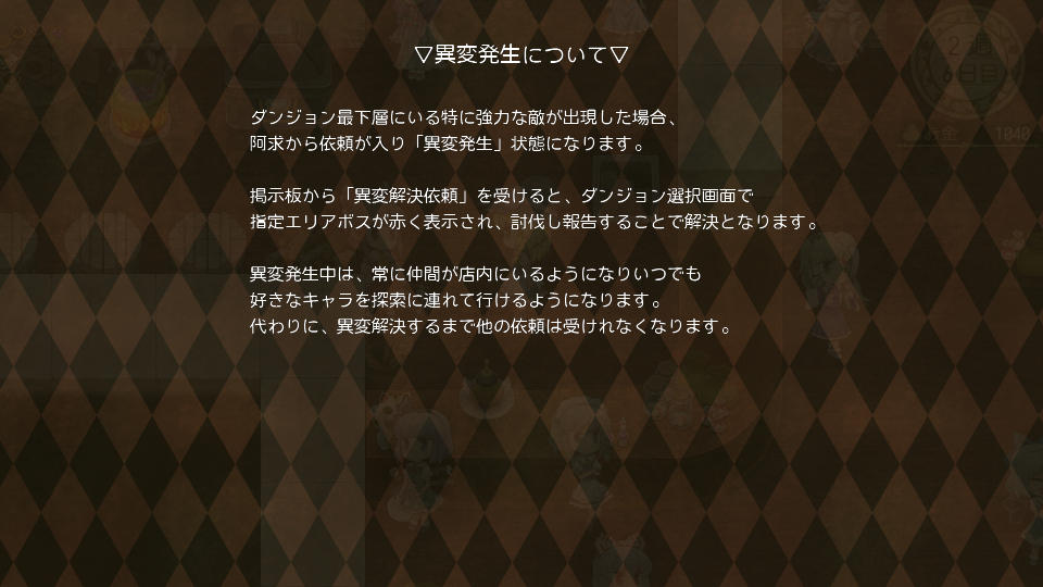 異変中は何もボスが出現する以外のダンジョンに行けなくなるわけではないので、素材集めのために他のダンジョンを探索することも大切です