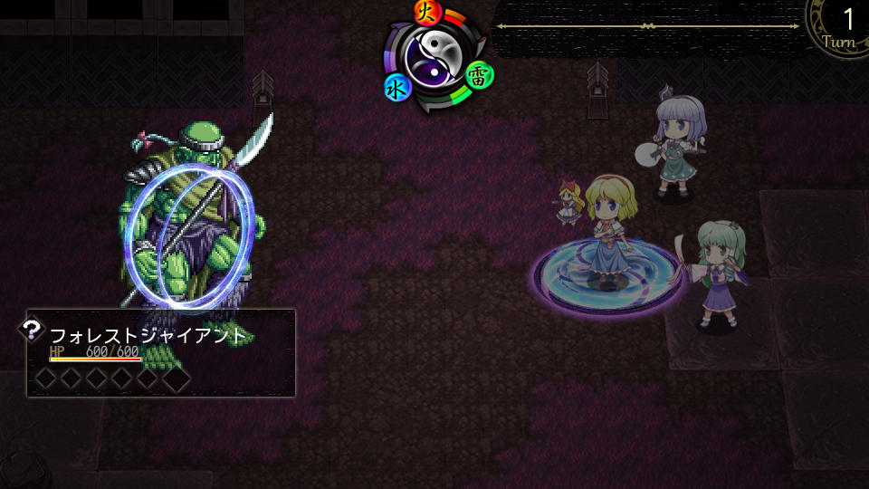 まず、さっきは早苗で攻撃力を上げて通常攻撃で殴ってたけどいまいちダメージが入らなかったので、今度は魔法主体で攻めます