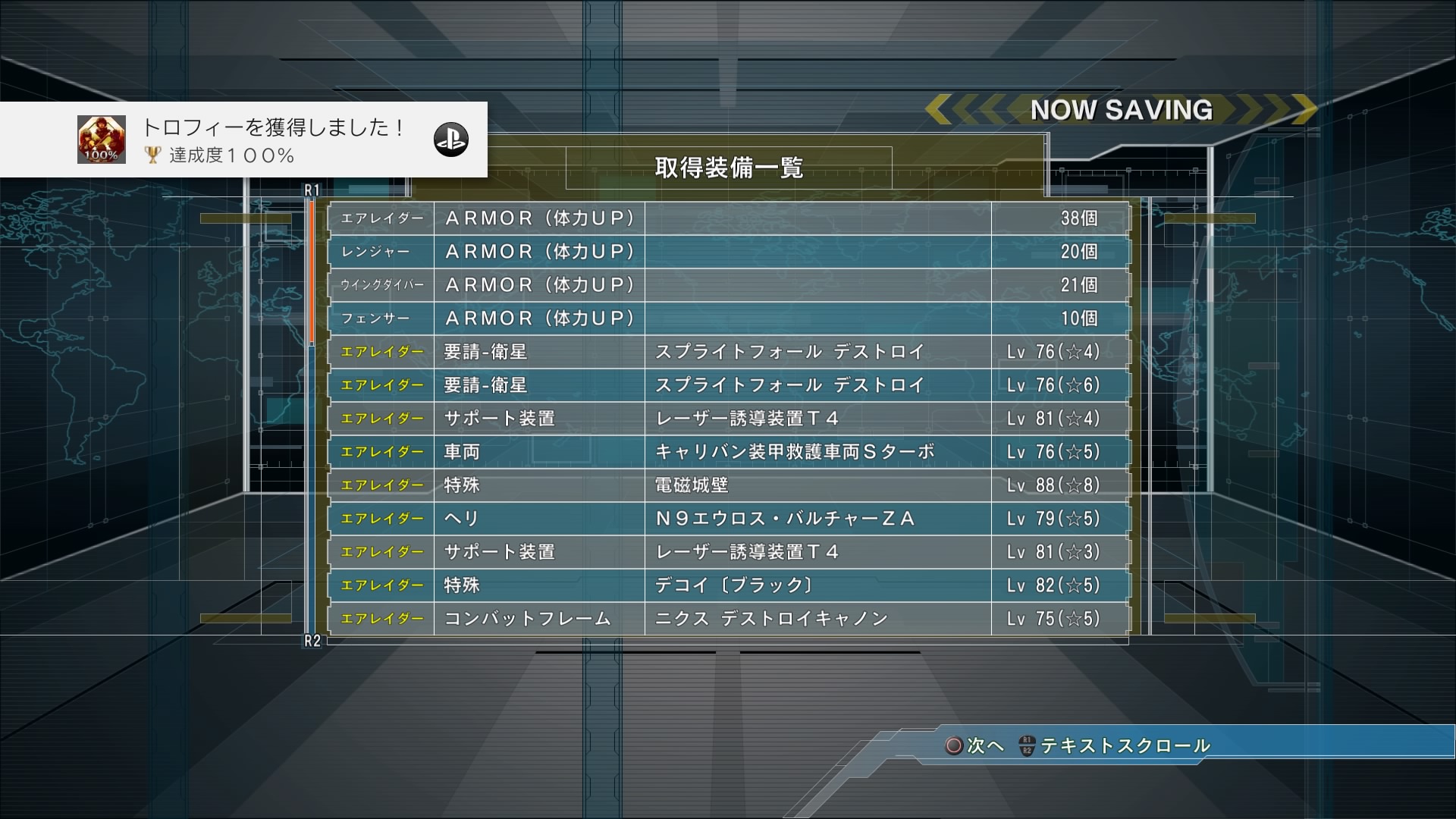 このうち約200時間はDLCの追加ミッションの分ですが、ここでのアーマーや武器の強化がなければ100%達成は実現しませんでした