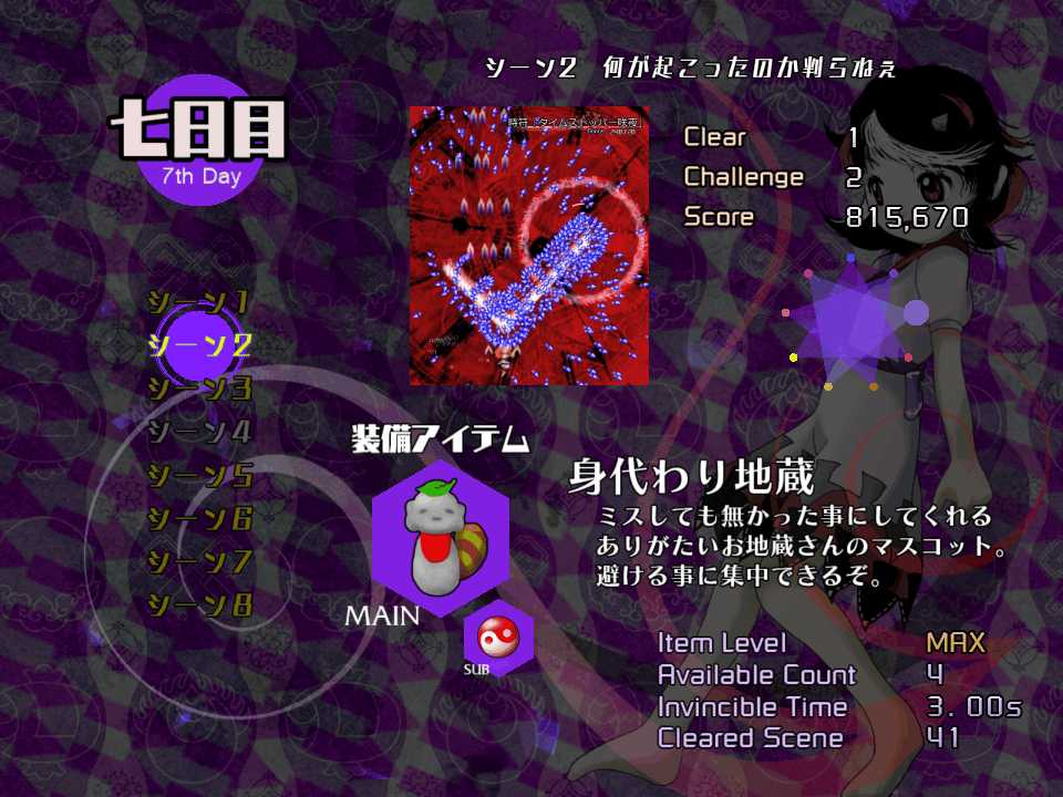 弾幕アマノジャクは、まだ3日目を全クリしてませんが、4日目を解放したところです