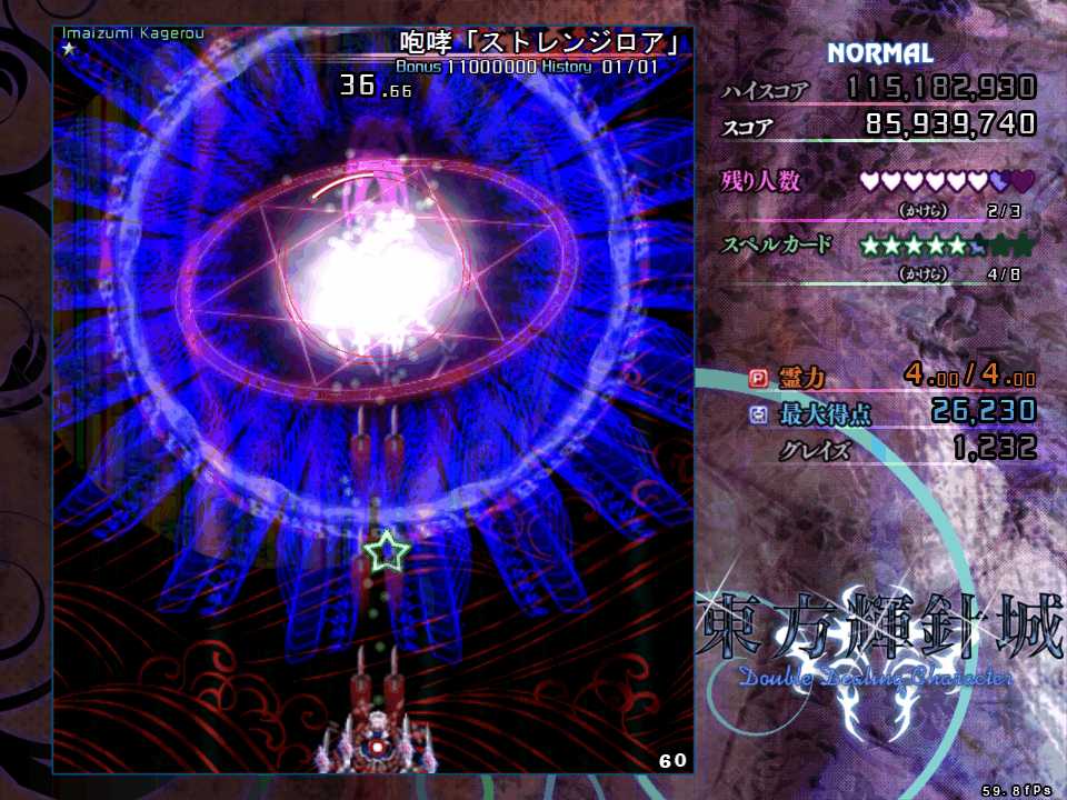結構ネタに走っている気がしないでもないけど、過去作で磨いてきた東方STGの技術が通用しないので、ひたすら練習して慣れないといけませんね