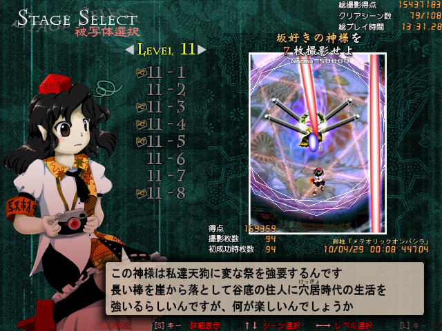 座布団は一定時間で高密度の弾幕に変化するので、その前にシャッターを切ると座布団ごと画面上の弾幕を一掃できます