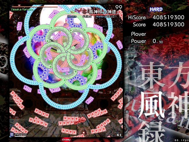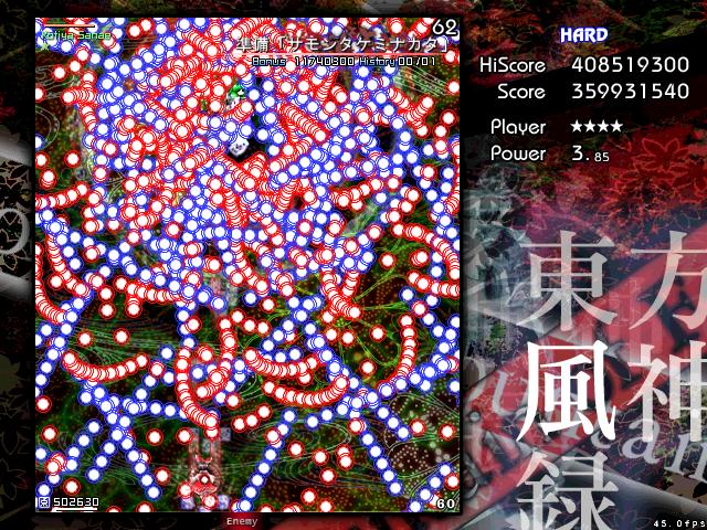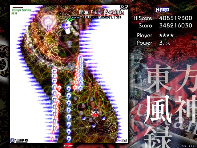 ハードがクリアできるようになって、そのあとスコア重視のプレイをするようになったんですが、それもそろそろ頭打ちになってきたので、次は風神録をやることにしました