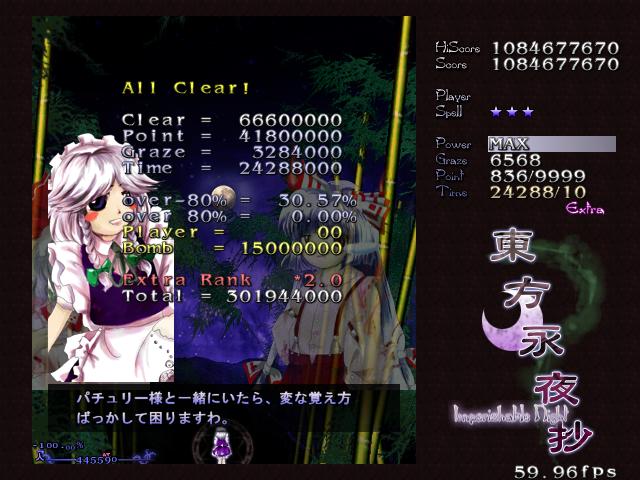 あ、あと1回エクステンドできるけど、こんな状態の俺を永琳がクリアさせてくれるとは到底思えない…