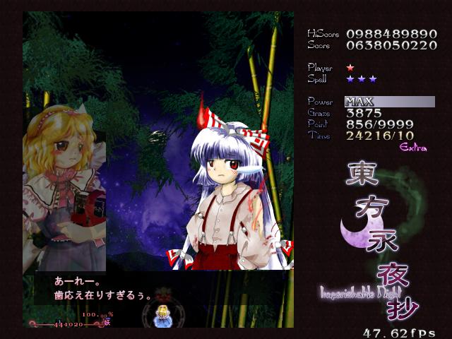 以前にルナティックやった時、コンティニューを2,3回ほど使ってようやく永琳を倒したことがありました