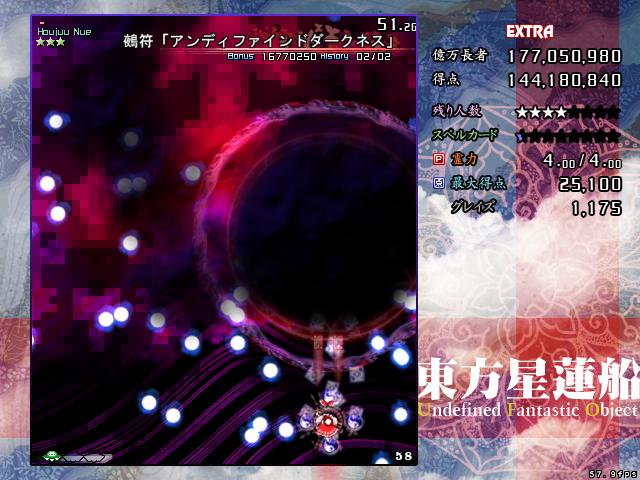 アイテム集めは考えなくてもいいし、標的はぬえ一体だけになるし、(UFOスペルをのぞいては)弾幕もそこたらじゅうからランダムで飛んでくるわけでもない(UFOスペルをのぞいては…)