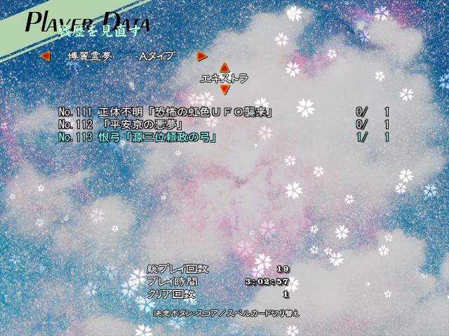 自分でも全然信じられないんだが、第8スペルでミスって残機0になった時はもうオワタって思ったけど、次のあの悪夢の耐久スペルをボム2つで切り抜けることに成功!