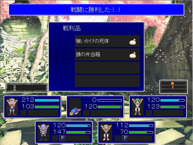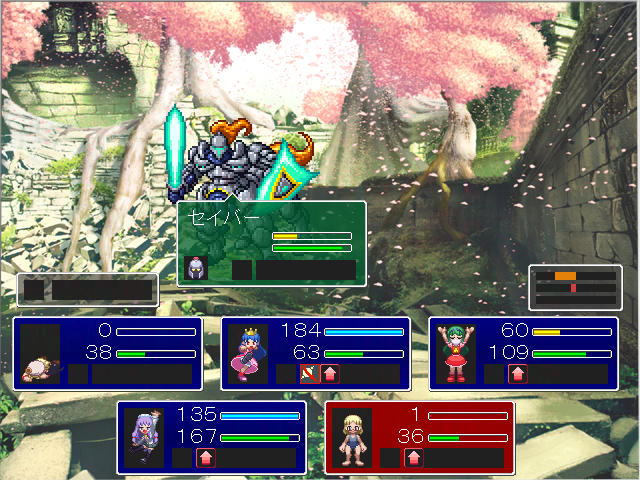 唯一銃だけがまともなダメージを与えられるので、瀕死のミサイル研に攻撃が来ないよう祈りながら戦うが、セイバーは後列への攻撃手段を持たないので、前列が壁となってミサイル研で攻撃を重ねることで撃破出来た。