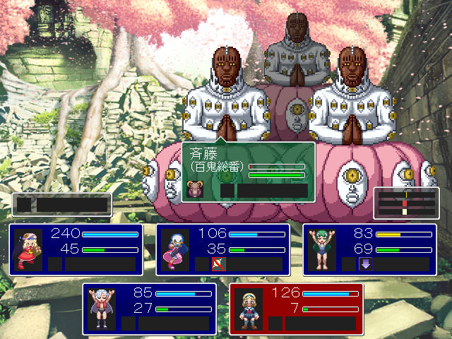 さらに、斎藤が「愛(アモール)の世界」を使うとフィールド効果が付加され、こちらの物理攻撃が一切当たらなくなった。