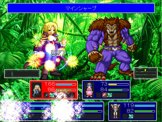 あと、コカトリスっていう敵はブレスによる全体攻撃で石化状態にしてくるのだが、全員が石化、もしくは死亡すると強制的に全滅扱いにされてしまう。ドラクエⅥの麻痺を思い出させる全滅の仕方だ。