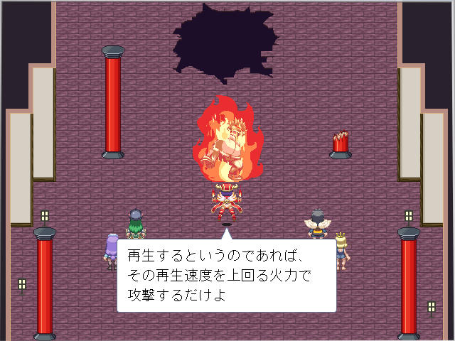 このようにボスはこれといって強力な技を使ってくることはなく、ボスの回復不能が解けたらすぐにカンバリをかけ直すことで、一方的な展開にもっていける