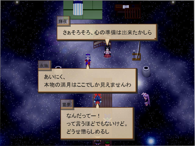 この無限ループを打ち破るには、何か別の方法をとらないと。そこで少々危険ではあるが前の二人はとりあえずおいといて先に輝夜を攻撃することにした。永琳と鈴仙はしばらくの間回復技を使ってるのでその間に輝夜を集中攻撃。輝夜は3人の中で一番HPが高いのだが、鈴仙の攻撃になんとか耐えて輝夜を撃破。そしてすかさず照準を永琳に変える。輝夜を復活させる前になんとか倒さないと、と思ったけどどうやら永琳は輝夜に対して復活技は使わないようだ。あとは永琳→鈴仙の順に倒して今度こそ勝利!!長かった、15分以上戦ってた!