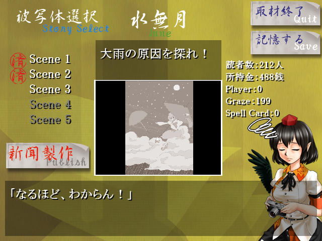 まあいいや、まだ全体の半分のシナリオしかプレイしてないけど、東方風聞記のプレイはこれで終了ということで