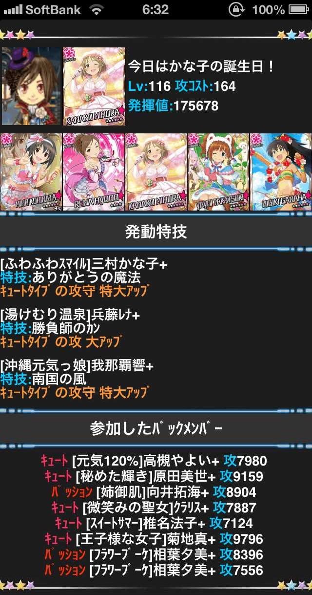 しかもこれは最も高い補正値が得られる理想的な発動特技ではないため、かな子ではなくやよい、響ではなく美穂ちゃんの特技が発動した場合は発揮値18万を超えると思います