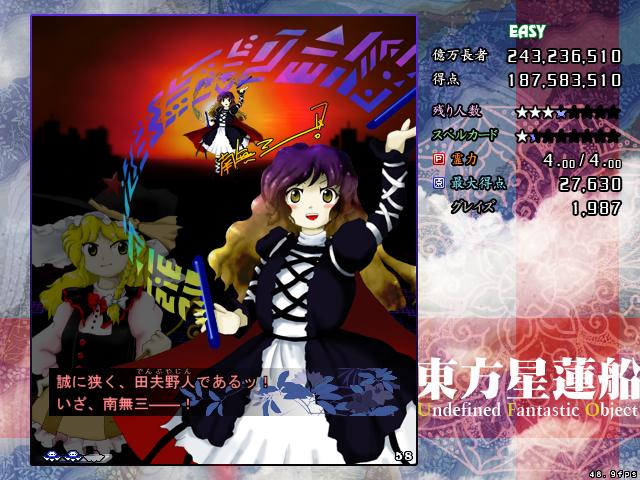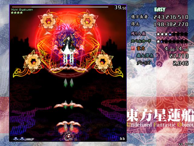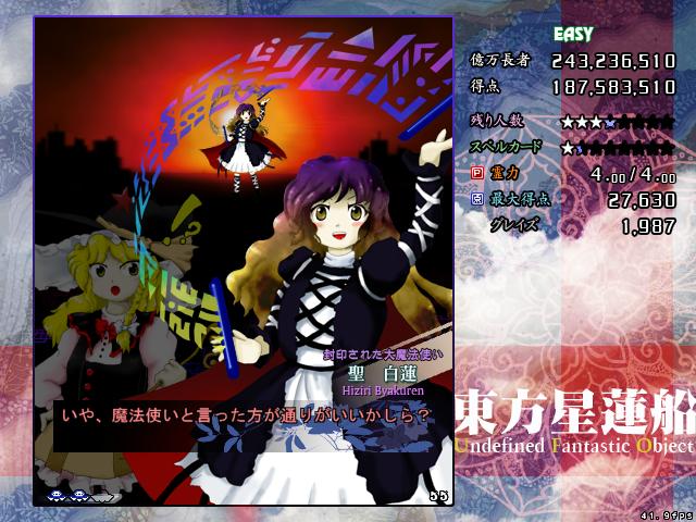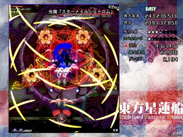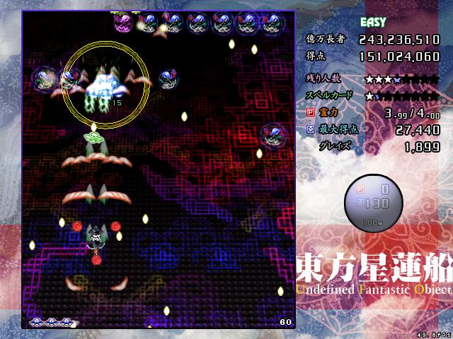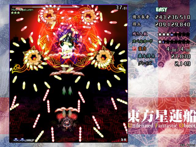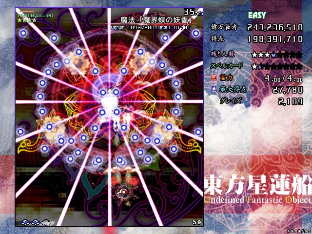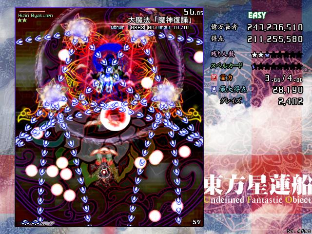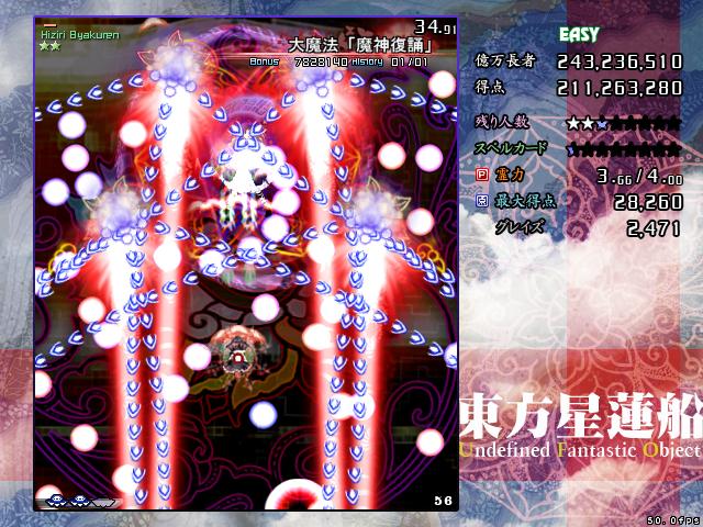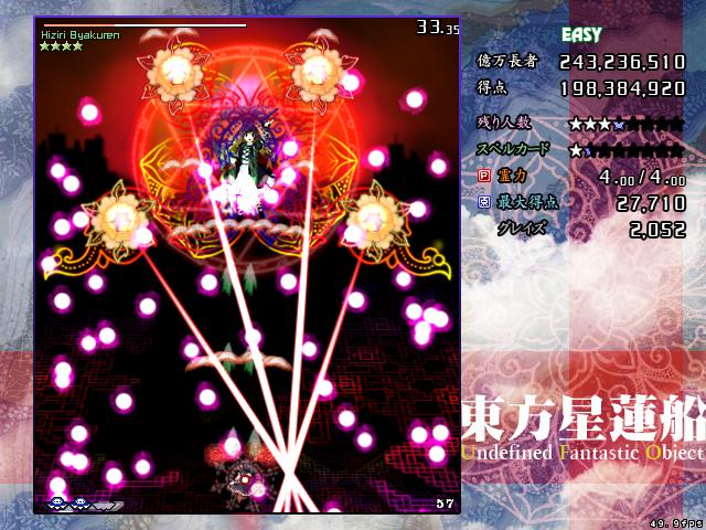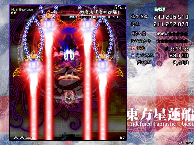 落ち着いてレーザーを避ければさほど難しくないが、イージーなのにスペルカード並みの激しい弾幕だ!